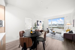 Sun-drenched, south-facing upper unit at Madison & Dawson built by Porte Communities in the vibrant heart of Brentwood. This bright & beautiful 2 Bed + large Den (perfect as a 3rd bedroom) + 2 Bath home offers 880 sq ft of modern living & spacious balcony with city views. Cook & entertain in the gourmet kitchen with large island, Kitchenaid Energy Star appliances, quartz counters, & soft-close cabinetry. Open-concept living & dining area, 9 ft ceilings & laminate flooring throughout. Bedrooms are thoughtfully separated for privacy & the versatile den works as an office or guest space. Enjoy top-notch amenities including a fitness centre, social lounge, garden terrace & guest suite. Steps to SkyTrain, Brentwood Mall, cafés & restaurants. Includes 1 parking stall & 1 storage locker.