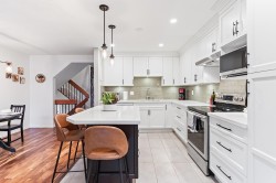Beautifully renovated 3 bed, 3 bath duplex-style townhouse in serene One Arbourlane! Gorgeously renovated kitchen with Merit cabinets, quartz countertops, and charming balcony perfect for your BBQ. Beautiful engineered hardwood floors throughout main. Cozy living room with gas fireplace, opening out to immaculately landscaped and paved patio surrounded by greenery. Fully finished basement with lots of storage and connected to large double car garage. Amenities include clubhouse with indoor pool, sauna, and party room. Nearby Burnaby Lake & Deer Lake parks, with quick access to Metrotown, the Highway and transit. Top school catchments of Buckingham Elementary & Burnaby Central Secondary.