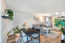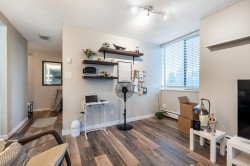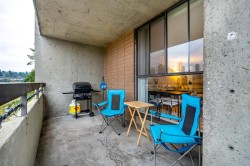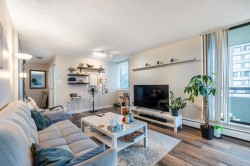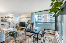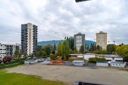 LOCATION! LOCATION! Across the street from Lougheed Mall and SkyTrain, this beautifully maintained and updated 1 bed, 1 bath corner unit at The Oaks offers 673 sq ft of bright living space. Enjoy large windows and sliders to a wraparound balcony with Burnaby Mountain views. Updates include new vinyl flooring, a modern kitchen with sleek cabinetry, countertops, and stainless steel appliances, plus a renovated bathroom with floating vanity. The spacious primary bedroom features two closets. Fantastic amenities include indoor pool, hot tub, sauna, gym, workshop, social lounge with billiards, darts, table tennis, library & more! Includes 1 underground parking stall & storage locker, with extra parking and EV charging available. Heat and hydro included in strata fees! OPEN SUN DEC 14 1130-1230