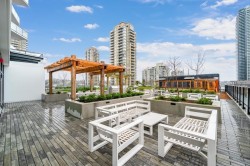 Welcome to Akimbo by Imani Development – where modern design meets unbeatable convenience. The bold architectural design of the building defines the Brentwood skyline. This 2 bedroom 2 bath south-west corner unit features a functional layout, beautiful state-of-the art kitchen with integrated appliances, spa-like bathrooms, clean finishing. Enjoy the covered balcony. The building comes with many amenities as well. Take advantage of the convenience this location offers as shopping, groceries(t&t opening soon), dining, entertainment, banking are just minutes away at The Amazing Brentwood. Transit oriented as it's just a 3 minute walk to Gilmore Skytrain Station. The included EV parking stall and storage. Pets and rentals allowed. School catchments are Kitchener Elementary, Alpha Secondary.
