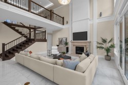 Welcome to prestigious Government Road. This exceptional modern residence offers over 6,000 sq.ft. of luxurious living space, featuring soaring double-height ceilings and dramatic south-facing windows that fill the home with natural light. Designed for both grand entertaining and comfortable family living, it boasts expansive living and dining areas, two full kitchens, and two self-contained suites—ideal for extended family or rental income. The flat, private backyard provides excellent outdoor enjoyment. With 7 bedrooms, 8 bathrooms, and premium finishes throughout, this remarkable home blends space, elegance, and versatility in one of Burnaby’s most desirable neighbourhoods.