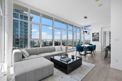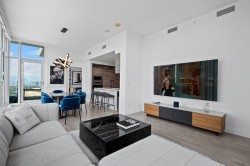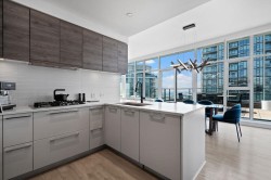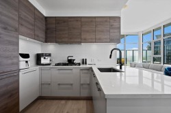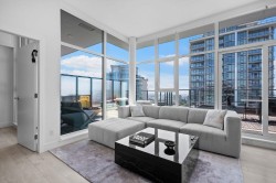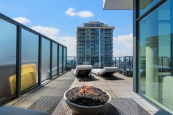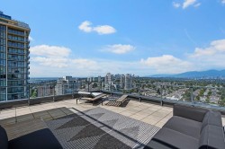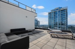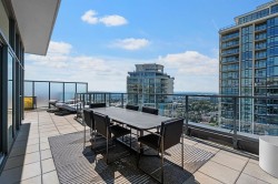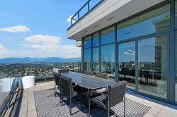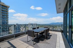 Penthouse Living with panoramic Views! This stunning 2 bed, 3 bath corner unit soars above the city with over 1200 sqft of private outdoor space and panoramic 270° views of the mountains, ocean, and skyline. Thoughtfully designed layout with two large bedrooms on opposite sides, each with its own ensuite bathroom, plus a stylish powder room for guests. The Cressey-built home features a chef’s kitchen with gas stove, heat pump with air conditioning, and over 1060 sqft of bright interior living. Premium amenities include basketball & squash courts, sauna, steam room, party room, two floors of gym facilities, & concierge. Includes 2 parking & storage. A rare opportunity to own one of Burnaby’s most impressive penthouse residences.