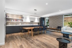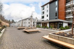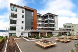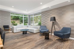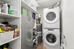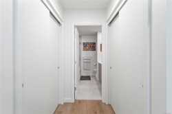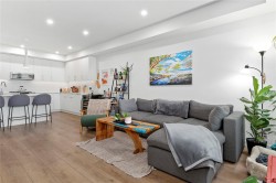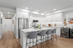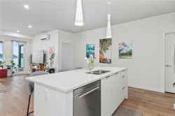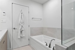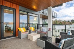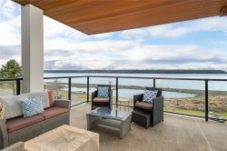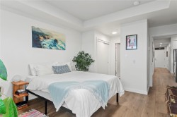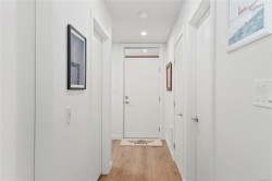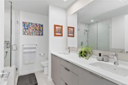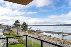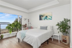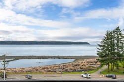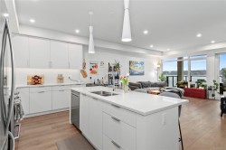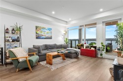 This stunning fifth-floor residence delivers unobstructed ocean views and an undeniable wow factor. Cruise ships, glowing sunrises, and dramatic winter storms create a constantly changing backdrop from the main living areas. The open-concept design is tailored for refined modern living, featuring a statement oversized island, quartz countertops, contemporary finishes, and soaring 9’ ceilings. A spacious view balcony extends the living space outdoors—perfect for relaxing or entertaining.Luxury details include stainless steel appliances, pull-out shelving in all lower cabinets, a heat pump for year-round comfort, and remote blinds in both the living room and primary bedroom. The primary ensuite offers heated floors, while a dedicated office with elegant floating shelves adds both function and style.Residents enjoy premium amenities including a fully equipped gym, social lounge, community patio, bike storage, storage locker, keyless entry, and secure underground parking.