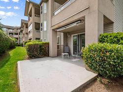 This 55+ 2 bed, 2 bath ground-floor unit features a well-designed layout with level entry. South facing unit, set back from busy Yale Road, offers a quiet and peaceful atmosphere, complemented by an extra-large, private, covered patio. Plenty of updates including new HWT, flooring, paint throughout, concrete patio, appliances, automatic Valor fireplace, included portable AC, light fixtures, faucets, sinks/countertops. Windows have a UV protection/privacy film for added privacy and comfort. Well-managed building, residents benefit from secure underground parking (extra stalls may be available), a storage locker, and guest suite. The monthly strata fee includes natural gas, sewer, and water. Conveniently situated just 5 mins from Hwy 1 and 3 mins from groceries, shopping, and District 1881!