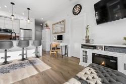 Immaculate 2-bedroom, 2-bathroom corner unit condo in the heart of Sardis’ vibrant Iron Horse community. Looks like new—without the GST! Beautifully designed interior featuring quartz countertops, white shaker cabinets, SS appliances & thoughtful finishes throughout. Huge covered balcony w/ stunning mountain VIEWS. In-suite laundry & secure underground parking for added convenience. Located in a prime walkable area, just moments from schools, shopping, restaurants & parks. With easy access to scenic trails, the Vedder River & Cultus Lake, this location is a dream for nature lovers. This bright, modern home offers exceptional value in one of the area’s most sought-after neighbourhoods.