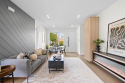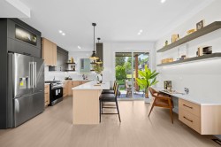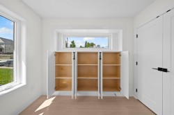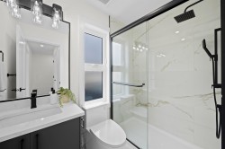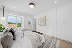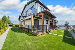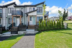 Modern 3-level home with thoughtful design and stunning mountain views. The main floor features an open-concept great room, dining area, kitchen with gas stove, powder room, and covered patio with a BBQ outlet. Upstairs offers a spacious primary bedroom with ensuite, two additional bedrooms, a full bathroom, and laundry. The lower level includes a versatile rec room/guest suite with full bath and crawl space storage. Enjoy an EV charger, A/C, built-in music system, security camera system, Garden hose connection on side and rear of property, built-in shelves throughout all rooms, and 2 parking spots plus street parking.