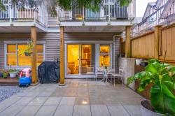 Your city home and yard awaits! Rarely available ground floor townhome with front patio and fenced back yard, perfect for young families and animal lovers. Centrally located, not only minutes from shopping, necessities and entertainment; live within minutes of local trails and outdoor activities that only add to your active lifestyle. Fresh paint, new flooring, baseboards, & low maintenance yard is move-in ready and prepped for your summer BBQs. 2 side-by-side parking, 1 storage and visitor parking included. Minutes from skytrain, schools and more! Amazing outdoor space totals another 862sqft of outdoor area for a total of 1874sqft of indoor and outdoor living space.