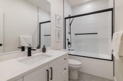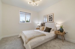 ***NOVEMBER DEVELOPER INCENTIVE AVAILABLE - CALL FOR DETAILS *** Move-in ready! Brand-new 3 Bed, 2.5 Bath townhome in Le Bleu - a boutique development in historic Maillardville. Bright and airy with 10' ceilings on the main level and 9' ceilings upstairs. Gourmet kitchen with shaker-style cabinetry, gas range, waterfall quartz countertops, and premium finishes. Comfort year-round with central A/C, high efficiency gas furnace, HRV system, and on-demand hot water. Enjoy the morning sun on your east-facing balcony and unwind in your private west-facing fenced patio. Quality craftsmanship and modern design. Two car attached car port with EV charging. Available for immediate occupancy.