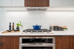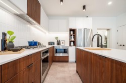 BRAND NEW ONE BED PLUS DEN ready for move in! This home is on the ground floor with a large patio and overheight ceilings. The kitchen is equipped with a 5-burner gas cooktop, one bowl kitchen sink with organizers, lots of cupboard space, full sized appliances, space saver corner and a dedicated pantry. Comes with an EV ready parking spot, storage locker and designated bike spot. There's air conditioning throughout the home with an energy efficient heat pump just in time for summer. The building offers a large dinner party room with full kitchen and outdoor space, gym, meeting/co-working space and common fifth floor deck. Two pets of any size allowed and there's a dog run amenity and dog shower/grooming room! Walk to transit, restaurants & groceries. OPEN SAT & SUN 2-4pm.