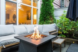 "CHARLAND" by LEDINGHAM MCALLISTER! A stunning 1-bedroom + den/home office with a spacious 232sf private entertaining patio—perfect for summer BBQs, relaxing evenings, or hosting guests. With direct lane access for extra parking, convenience is at your doorstep. open-concept layout with a generous living/dining space, laminate flooring throughout, in-suite laundry, and high-end finishes, including stainless steel appliances, quartz countertops, tile backsplash, and soft-close cabinetry. Amenities include secured underground parking, a storage locker, an exercise room, bike storage, and common rooftop terrace with breathtaking views. Located in Austin Heights, you're just steps from transit, shopping, dining, Blue Mountain Park & Van Golf Club.