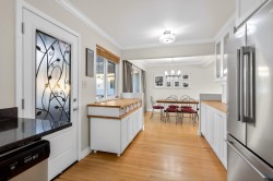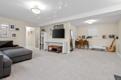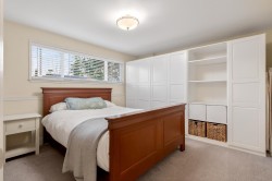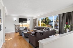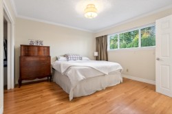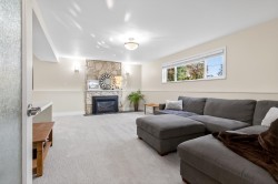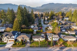 Meticulously maintained 5 bdrm/3 bath family home on level 7,920 sq ft lot w/lane access on sought-after Harbour Chines Street. Steps to QAS, Como Lake & Harbourview Elem. Tastefully updated w/new roof (’21), newer windows, kitchen & baths (2011). Bright kitchen w/white cabs, stone counters, s/s appls & mtn views from the sink. Refinished orig H/W flrs, spacious LR w/lg picture window & gas FP. Enjoy the lg covered sundeck—perfect for year-round outdoor living. Bsmt w/sep entry offers lg fam rm w/gas FP, new carpet, 2 add’l bdrms, dream laundry, 3-pc bath & loads of storage. Great layout w/suite potential for extended family. Quiet, prime location close to parks, schools & transit. Move-in ready!