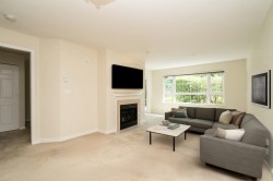 Welcome to this peaceful & private 1 bedroom home located on the quiet side of the building, offering serene courtyard & garden views. Enjoy your morning coffee or evening unwind on the large patio, perfect for relaxing or entertaining. Inside, you'll find a cozy gas fireplace, in-suite laundry, & a walk-in closet in the bedroom. The open layout is bright & functional, making the most of the space. Just steps to SkyTrain, Douglas College, Lafarge Lake, parks, trails, restaurants, cafés, & all the amenities of City Centre - including the Aquatic Complex & Public Library. Pet & rental friendly. Wheelchair access. Bonus: 2 Parking stalls, storage locker & even a car wash station! Whether you're a 1st-time buyer, investor, or downsizer, this home offers lifestyle, location, & value.