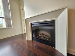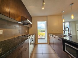 Claremont by Bosa at Coquitlam Centre! BEST VIEW OF THE BUILDING. Well maintained and newly painted NE corner unit open floor plan, 2 bedroom with a den - the spacious den can be a 3rd bedroom, along with 128 sqft of two balconies. Features are the bright living room with a fireplace, upgraded laminate floor throughout, kitchen with SS appliances & island with granite countertops, huge entrance hall, fully-equipped gym, SIDE BY SIDE 2 PARKING & 1 storage locker. Walking distance to Skytrain, West Coast Express, City Hall, Shopping Mall, Community Center, Lafarge Lake, Library, Douglas College, Glen Eagle and Pinetree Secondary Schools, restaurants & more. Ideally located for the convenience and comfort. Open House: 2-4 pm, Sun, Nov 2, 2025.