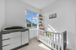 Bright 3-bed townhome overlooking greenbelt at Rocklin by Woodridge homes. Lovingly cared for by original owners with 9’ ceilings on every floor. Main floor offers large living & dining areas, chef’s kitchen & powder room. Upper floor features 3 bedrooms, 10’8” vaulted ceilings in primary bedroom overlooking private yard, spa-like ensuite with dual vanities, & full size laundry closet w/ additional shelves. 2-car XL tandem garage with lots of storage options. Fenced in 360sqft backyard overlooking greenbelt with built-in gas bib for summer BBQs! Located on the quietest row within the complex with no-through road but easy access to Rocklin St. Walk to daycare, Victoria Park. Amazing family neighborhood w/ upcoming comm centre, pool, library & schools.