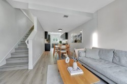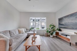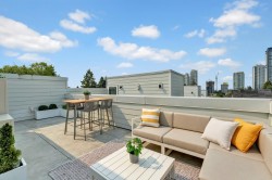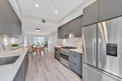 Discover this beautiful 2-bedroom, 2-bathroom townhome featuring a massive rooftop terrace and a fenced front patio perfect for entertaining or relaxing outdoors. The open-concept layout is elevated by contemporary designs and thoughtful upgrades, including the large kitchen with quartz countertops and backsplash and Fisher & Paykel appliances, Air Conditioning, sleek laminate flooring throughout, custom closet organizers, and smart home features for modern living. Ideally located just steps from a 55,000 sq. ft. YMCA, retail plazas, and everyday conveniences. This home comes with 2 underground parking stalls with EV charger and a secure storage locker. Open house 2-4pm on Sun, Dec 21.