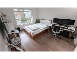 BEAUTIFUL Bright CORNER UNIT South facing, Windows everywhere. Fully renovated with new appliances fresh paint, LED lighting and flooring. This 3 bedroom, 2 bath, 2 parking spots 2 storage lockers unit is perfect for a family. Enjoy cooking at the chef’s kitchen with new Samsung appliances and Fotile hood fan. The Master retreat features a walk-in closet, soaker-tub, dual sinks and will fit a king bed. The other 2 bedrooms are at the opposite side of the unit and away from the master bedroom. The living and dining rooms are spacious enough for house size furniture with access to a covered exterior 12 x 8 ft deck. Fantastic complex with its own outdoor pool, exercise room and meeting rooms. Nearby is the Evergreen Line, Westcoast Express, shopping & restaurants. Act fast before its gone!