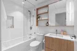 Welcome to this newly completed 2-bed, 1-bath sub-penthouse on the 23rd floor—747 sq. ft. of smart, stylish living with spectacular NE mountain and city views. A rare 140 sq. ft. balcony with natural gas and power extends your lifestyle outdoors. Inside, enjoy a premium kitchen with quartz countertops and Fisher & Paykel integrated appliances, plus sleek laminate flooring throughout. West by Beedie puts you in the heart of Burquitlam, steps to shops, parks, The Vancouver Golf Club, and minutes to SFU. Resort-style amenities include a designer party room, state-of-the-art fitness centre, co-working lounge, luxury guest suite, outdoor BBQ area, and a one-of-a-kind indoor sports court you won’t find anywhere else!