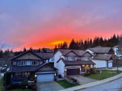 Nestled in sought-after Westwood Plateau, this beautifully maintained home backs onto a tranquil green space, offering privacy and stunning sunsets from your living room. Featuring 5 bedrooms and 4 bathrooms, the main level boasts a bright living room with 17-ft vaulted ceilings, a stylish kitchen with stainless steel appliances, marble backsplash, granite counters, and a cozy family room with gas fireplace. Upstairs offers 3 spacious bedrooms, while the basement features a large rec room, 2 bedrooms, and a full bath—perfect for guests, teens, or extended family. This home blends elegance, comfort, and natural beauty. Open House Sunday November 30, 2-4