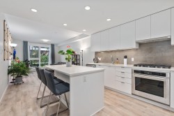 CARDINAL by AWARD WINNING POLYGON- like brand NEW 2 BEDROOM 2 FULL BHR with luxury lobby, brick exterior details, oversized windows. EAST exposures home with tons of natural light, premium open kitchen + BIG ISLAND 6’x3’ and a Gas cooktop; all stone countertops, primary bedroom boasts a WALK-IN CLOSET, ensuite with dual sinks+ shower. Upgraded with CUSTOM lighting/ shelving/ drawers/curtains. Enjoy top-notch amenities, including an FITNESS/ GYM, a guest lounge for parties, big courtyard+ playground, live-in caretaker. Steps away from Lougheed MALL, across Cottonwood PARK, tennis courts, YMCA & Burquitlam Skytrain, SFU, BURNABY MOUNTAIN TRAILS. Parking stall with installed EV charger+ Visitor's parking, BIKE storage+ BIG locker 6’4 X 6’ included. SHOWINGS BY PRIVATE APPOINTMENTS.