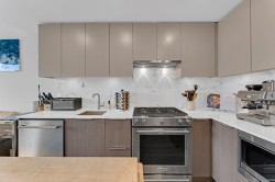 Welcome to Port & Mill by Streetside. This one bedroom + den offers north facing mountain views with plenty of room in den for office, second bed or storage. The large kitchen is completed with quartz counters, gas range and modern cabinets. Primary bedroom connects to the bathroom for convenience and ease. It is situated in the perfect location for all amenities including skytrain and groceries. This suite provides in suite laundry, one parking and one storage unit. The strata is complete with a gym, playground, outdoor BBQ and amenity room with full kitchen. Unit 409 is waiting for you to call it home - explore the possibilities with this wonderfully bright space!