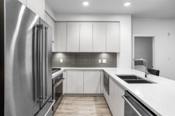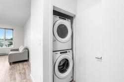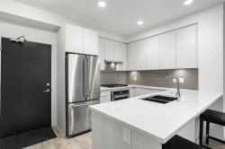 Welcome to SIMON2 - Location, luxury and lifestyle! This bright, airy 2 bed, 2 bath home offers a spacious, functional layout by renowned local builder Otivo. Large windows fill the space with natural light, the modern kitchen features high end stainless steel appliances, premium cabinetry and sleek countertops. Bedrooms are well separated, including a private primary ensuite. Enjoy a full size washer/dryer, 1 parking, 1 storage locker, all with low strata fees. Just steps to Burquitlam SkyTrain, shopping, parks and the new Rec Centre, this boutique community blends comfort with unbeatable convenience. Centrally located close to Parkland Elementary, Mountain View Elementary and Dr. Charles Best Secondary. Don't miss your opportunity to check out this fantastic home! [OH DEC 21 12-2PM]