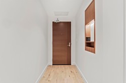 Brand new SOUTH-facing 2 BDRM corner home at Smith & Farrow by Boffo. Enjoy abundant natural light and a spacious 233 sqft patio with gas hookup. Features include A/C with smart thermostat, choice of designer dining table or 6' quartz island, integrated Fisher & Paykel/Bosch appliances, 5-burner gas cooktop, French door fridge, and custom pantry wall. Primary BDRM offers built-in wardrobe, heated ensuite floors, frameless glass shower, and medicine cabinets. Second bath with soaker tub, full-size laundry. Resort-style amenities: rooftop lounge, pool, hot tub, steam rooms & gym. 1parking + storage. Move-in ready! OPEN HOUSE Nov 1 2-4PM