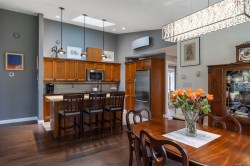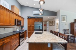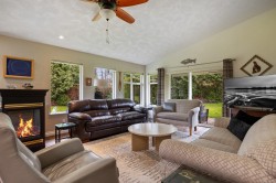 Welcome to River Glen. This rare, meticulously maintained & updated 3 bed, 2 bath patio home along the peaceful Puntledge River, is a short walk to downtown Courtenay & located in the well-run, proactive, strata. No detail overlooked, this upscale patio home features 6 custom additional south facing windows, heated hardwood & tile floors, new HRV system, new heat pump, new roof, new hot water tank, high-end appliances, & fresh paint throughout. Open concept kitchen with granite counters. Vaulted ceilings for a bright, open feel, while a 3 sided gas fireplace anchors the living space. The well designed floor plan provides separation & privacy for all bedrooms. Updated sinks, faucets, & quartz counters in bathrooms. The primary ensuite includes a walk-in shower, soaker tub, & generous closet space. An extended sliding door opens to a spacious patio spanning the primary bedroom to the living room. Complete with gas BBQ hookup, sprawling green lawn, southern exposure & excellent privacy.