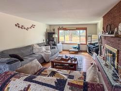 Situated just on the edge of the city limits with stunning mountain views, this rare 0.26-acre property offers the perfect blend of space, comfort, and convenience. The 1,420 sq. ft. bungalow has been thoughtfully maintained and upgraded, featuring three spacious bedrooms or 2 + den, two beautifully updated bathrooms, and the added convenience of main floor laundry with front-loading machines. The bright kitchen and dining area flow seamlessly in an open floor plan, while the living room showcases hardwood floors and a charming wood brick fireplace as a cozy focal point. A side enclosed porch leads to a partial basement, providing abundant storage and direct access to both the single carport and the backyard. Practical updates include a high-efficiency furnace installed in 2022, new electrical service, a hot water heater replaced in 2018, and updated vinyl windows completed in 2010/11. Connected to city sewer just three years ago and supplied with city water, this home is move-in ready. The beautifully landscaped yard is complete with a gazebo, garden beds, and generous RV parking, making it a true gem for those seeking both lifestyle and location.