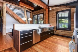 Located on a quiet historic road in Cumberland, this curated and beautifully restored home blends architectural character, environmental efficiency, and modern comfort. Built with local timber, island marble, a cedar shake and EPDM rubber roof, heated concrete floors, zone-controlled heat pumps, and a new 5.5 kW solar system. The main residence features 3 bedrooms including a character-filled loft, curved reclaimed wood stairwell, forest views, and a cozy fireplace. The lower level has a legal studio suite with separate access, offering excellent flexibility for guests or income potential. Outdoor spaces include covered porches and decks, granite rock work, irrigated gardens, a passively cooled root cellar, and a natural swimming pool. Zoned R-1A, allowing for vacation rentals, and has designs ready for a future garage or coach house. Close to downtown amenities and mountain trails, this is a rare opportunity to own a piece of livable art that supports a healthy, active lifestyle.