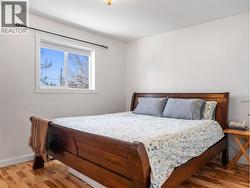 Central location and an excellent renovation. Exterior features a 24x24 garage with two 10' doors, a shiney renovation, 2 sheds, fully fenced and private. The home was renovated in 2024 including steel roof, LP SmartSide, doors and windows. The interior is elegantly finished with maple hardwood, ceramic tile, new trim and paint. The gourmet kitchen features granite counters, maple cabinets, stand alone island, built-in gas range and stove. The floor plan is wide open with a wood fireplace in the living room and patio doors to the private deck which also has a windscreen. There are 3 bedrooms including the primary with an attached 2 piece ensuite, plus 2 more bedrooms. The basement features a large family room with an electric fireplace plus an oversized bedroom and another bathroom. The yard includes a garden shed plus a beautiful old pine and several cedar shrubs. Call now for a private tour. (id:27)