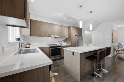 Welcome to Kaleido in Polygon’s Sunstone community! Fresh paint and new carpet complement a bright home with an entry facing the green space—like an extended yard for kids. Open-concept living features a spacious kitchen with sleek cabinetry, quartz counters, an oversized island and stainless-steel appliances. Step out to the patio for BBQs and use the nook as a home office. Upstairs: primary suite with walk-in closet and dual-vanity ensuite, plus 2 bedrooms, a 4-piece bath and laundry. Double garage + 2 extra parking spots (4 total). Steps to Nordel, Hwy 91/99/17, transit, schools, shops, dining and parks. Enjoy the 12,000 sq ft Sunstone Club: gym, pool, hot tub, theatre, court, guest suites and more! Open house Sat 2-3:30pm.