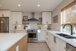 Located on a cul-de-sac & backing onto a park for privacy! This stunning home has had a professional upscale renovation including plumbing & is move in ready for you to enjoy! Smart use of space with added built ins & a thoughtful open floor plan making great use of the 1300 sq ft! Kitchen has S/S appliances, massive island with microwave, bar fridge, quartz & accented with trendy black hardware. Lots of cabinetry! Family rm has fireplace and sliders lead to the huge covered 26 x 12 patio & your private yard complete with shed. Head out the back gate to the park for convenient access! All 3 bdrms are well sized & the spa like 4 pc bathrm has heated flrs. Long driveway parking & room to park your boat or RV! Rec, schools & shopping are all outside your door. Great area & neighbourhood!