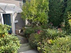 VILLAGE GREENS 'move in ready' 3 bed 3 bath 1768 sq ft DETACHED HOME on private & sunny lot in central location - walk to everything!Updated kitchen with white shaker cabinets, quartz counters, s/s appliances & skylights for natural light overlooks back gardens.Living & dining rms feature warm H/W flooring & abundance of windows & living rm has cozy gas f/p & sliders to spacious covered deck - great outdoor living space!Primary bdrm down features spa inspired ensuite with soaker tub & separate shower.Two additional bdrms down share updated bathroom & family rm is ideal TV rm, gym or office with sliders to private back yard with deck & lawn space - low maintenance yard - ideal for kids & pets! Walk to everything from this great Beach Grove location!