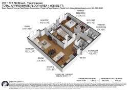 Sparkling modern apartment in Tsawwassen's popular Fairview 56. Superb central location steps to transpo, shopping & town centre amenities. Bonus size: Strata Plan shows 985 sf but as-builts measured by YVRPixel show 1098 sf! Open floor plan with spacious rooms & 9' ceilings. Superb finish with baseboards, crown mouldings, Dekora Rocker & more. Updates in 2019 include: all new stainless Samsung kitchen appliances (incl microwave - hood fan), Frigidaire laundry set & hot water tank. 2006 build means many modern components & applications including a fully rain-screened exterior. Well managed building - ask for the documents! This is a wonderful opportunity for carefree living in T-Town's vibrant centre. Visit an open house or request your private viewing.