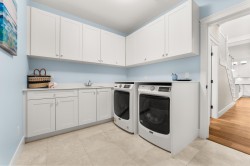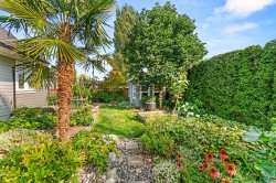 Step into timeless elegance with this custom built home, where luxury details meet everyday comfort. The beautifully landscaped front gardens set the tone while the private south-facing backyard offers a breathtaking retreat. Inside, the open-concept design is filled with natural light, featuring 10ft ceilings. Duchateau engineered hardwood and Rejuvination lighting fixtures. The chef's kitchen is a true showstopper with marble counters, shaker cabinetry and DCS appliances including a 6-burner gas range. The primary bedroom on the main floor is your sanctuary, complete with his & her closets and a spa-like ensuite featuring marble finishes and a deep solar tub. Euroline windows, exquisite millwork, solar panels and meticulous care throughout make this home as efficient as it is beautiful.