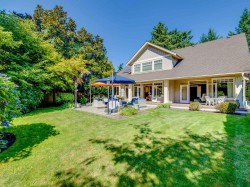 ESTATE-LIKE FAMILY HOME! - Top quality construction craftsman style on a completely private, sunny, south facing, park like 11,603 sq ft (60x194) lot with beautiful gardens including a built in sprinkler system! The home features a popular, high ceiling Great Room design with an impressive Fireplace! Extra Large PRIMARY BEDROOM ON THE MAIN FLOOR (with A/C) leads to the garden patio for you to enjoy your morning coffee. Other features incl: open concept, gourmet Kitchen & separate Dining Room, 3 BDRMS up, radiant in floor heating, new high-end boiler system, 200 amp service, newer high-end "low E" windows, H/W floors & crown mouldings. Extremely well kept by original owners. Quiet location surrounded by newer executive homes in upper Tsawwassen & just a short walk from the amazing Sunsets!