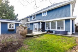 Listed BELOW Assessmen! Charm, Comfort, Style and Location is all captivated in this Deluxe, Quality custom built Home! Grande Formal living room and dining room with engineered hardwood floors and gas fireplace. Absolutely stunning kitchen with granite countertops and beautiful cabinetry, SS appliances. Bright & sunny eating area and family room, all with 12ft ceilings! Upstairs features a big primary bdrm with 4 piece ensuite and walk in closet. 2 other good size bdrms with "Jack & Jill bath". Updated mechanical. So much curb appeal, south facing back yard has a beautiful deck with built in gas fireplace for entertaining. Adorable shed is insulated and has power, perfect for office or studio! Walking distance to Hawthorne or Neilsen Grove Elementary, Village shops, Lions Park.
