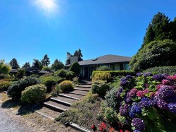 Beautiful Custom-Built Rancher on a Prime Corner Lot in Central Tsawwassen! This meticulously maintained 3-bed+ den, 2.5-bath home offers a thoughtfully designed floor plan with over 2,150 sf of one-level living. Step into the bright and spacious foyer, leading to an extra-large living rm with a feature fireplace and an elegant separate dining room. The sunny kitchen opens to a covered private courtyard-perfect for year-round enjoyment. The generous primary bedroom features a walk-in closet, ensuite, and across to a private patio. Two additional bdrms, a versatile den, and ample storage make this home both functional & inviting. Skylights bring in natural light even on rainy days. Fantastic walkable location-just mins to library, shops, restaurants, and transit. A rare gem and a must see!