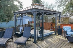 Located at the entrance to a quiet cul-de-sac in Sunshine Hills, this 4-bedroom, 3-bathroom home offers a true balance of comfortable living and future potential. The updated kitchen anchors the main level with modern cabinetry, newer appliances, and direct access to a covered patio, perfect for indoor-outdoor entertaining. The layout features an updated lower-level recreation room and a spacious fourth bedroom for guests, extended family, or a home office. The private backyard is built for hosting with a covered outdoor area, gazebo, large deck, hot tub, and above-ground pool—ideal for summer gatherings and BBQs. Just a short walk to shopping, Cougar Canyon, and Seaquam. Prime Sunshine Hills lot ready to enjoy today, with flexibility to enhance and strong long-term potential.