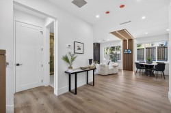 Brand-new modern West Coast 1/2 duplex on a prime corner lot w/ unobstructed Burns Bog views, 3,022 sq.ft. per side & 390 sq. ft. of covered decks on 9,000 sq.ft. lot (4,500 sq. ft. per unit). Features include a side-by-side double garage & 53-ft driveway w/ parking for up to 8 vehicles. Open-concept main floor,floor-to-ceiling windows & designer kitchen w/ double fridge,wine fridge,gas range & hidden spice kitchen, a main-floor bedroom w/ full bath. Upstairs has four bright bedrooms,full laundry & a primary suite w/ California Closets & spa-inspired ensuite,covered patio. Basement w/ 2-bedroom legal suite & rec room w/ full bath. Finished w/ custom cabinetry,slab-marble feature wall,LED lighting,glass railings,Control4 smart home,AC&tankless hotwater. Open House Sat 1-4PM, Sun 2-4PM.