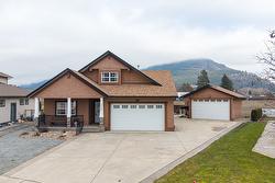 If you need parking for that RV, pick-up or boat, & a spot to tinker, then you have come to the right place! On a quiet street this home also boasts a location second to none on a large lot (almost 9000 sq.ft.) backing onto farmland with a spectacular view of the Enderby Cliffs! The main floor features a great room style layout with a soaring vaulted ceiling up to the second floor & loads of windows to take in the morning light & that beautiful view. The kitchen offers stainless appliances (incl a gas stove) plenty of cupboard and counter space plus a walk-in pantry and island with breakfast bar. A patio door from the dining area opens onto the covered deck & the large fenced backyard. The primary bedroom is located on the main floor & features a walk-thru closet to the full ensuite with a soaker tub & separate shower. Double french doors open out to a lovely outdoor sitting area. A large den (could be a 4th bedroom), laundry & a convenient powder room complete the main floor. Upstairs are 2 generous bdrms with a full bath between. There is abundant parking outside in addition to the double car garage & separate detached garage/shop. Tuey park with it's beach, & landing point from a leisurely river float, is a short drive or cycle away. A high school is within walking distance & there is easy access to nearby walking trails along the river & the new rail trail. All your grocery needs are a short drive too & is just 15 min away. So much to enjoy here...come and see!