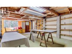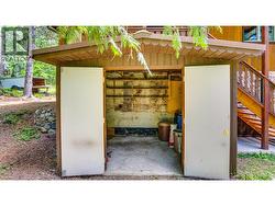 Nestled among tall trees on a gently sloped 0.4-acre lot, this Dutch-style home offers timeless country charm and much potential. Whether you're seeking a peaceful full-time residence or a seasonal getaway, this property combines natural beauty with character-rich living. The home's distinctive curved roofline, custom wood and stone finishes, and hand-crafted details hold personalized exterior character. Inside, you will find a very spacious primary bedroom with its own balcony, and two additional rooms with exterior doors awaiting their own balcony. The unfinished kitchen and open entertaining areas are a canvas waiting for your ideas. At ground level, the garage has custom made wood doors and is connected to a spacious work/storage space. The property offers ample room for RV, boat and recreational vehicle storage. The laneway gives access to additional parking and holds potential to build a pull through driveway. Located on quiet and friendly Walker Rd, this property is within walking distance to the shores of Mabel Lake and close proximity to the marina, beach, golf course, restaurant, air park, Shuswap River, and Kingfisher Community Hall. 30 min to Enderby and Highway 97A, 1.5 hr to Kelowna Airport, and 50 min to Highway 1, this is a central location for commutes yet tucked away in serenity. Current owner dwelled on the property and maintained it year round. (id:27)