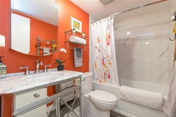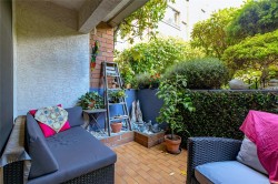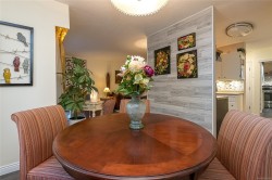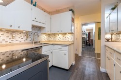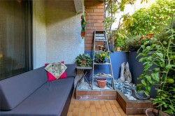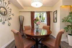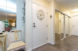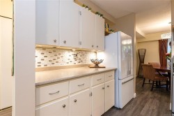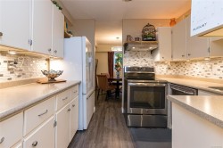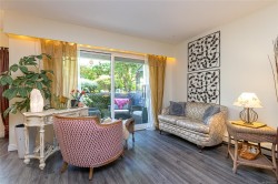 This spacious 1 bed + den, 1 bath condo offers a rare blend of comfort, style, & tranquility in a sought-after location. The layout features generously sized rooms, oversized windows, and a sunroom-style nook that creates a bright, airy feel. Step out to your private, east-facing patio—surrounded by mature greenery, perfect for morning sun and summer shade. Updates include modern flooring, fresh paint, sleek kitchen backsplash, a high-end Fisher & Paykel fridge, and a refreshed bathroom. The bedroom is truly oversized—ideal for a king bed. The open-concept living/dining area features a full-size dining room and modern finishes. You'll also enjoy in-suite laundry, a large walk-in closet & extra storage. Tucked near the Vic West/Esquimalt border, just minutes to the Galloping Goose Trail, Gorge Waterway, transit, and downtown. Includes a storage locker and parking. Cat-friendly & rentals allowed in this well-managed building. A turnkey gem for first-time buyers or downsizers!