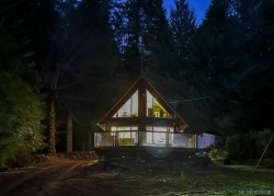 West Coast cedar-sided 2-bedroom, 2-bathroom home with metal roof, situated on 0.60 acres close to the ferry, village shopping, and a short walk to Descanso Bay. Spacious deck overlooks the yard, where 1,000+ deer-proof daffodils bloom in season. Inside the 902 sq ft home, vaulted ceilings and large windows create a bright, open feel. The main level features a kitchen with propane oven, living room with high wood ceilings, and dining room opening to the deck, plus a bedroom and full 4-piece bath with laundry. Upstairs offers a loft/office space, spacious primary bedroom with architectural angles, and a 2-piece bath. The home is serviced by cisterns with filtration and UV system, and the septic system has had recent upgrades. An ideal blend of privacy, character, and proximity to the essentials — a property that truly feels like Gabriola. A full information package is available, including video, floor plans, and virtual tour. All information to be verified if deemed important.
