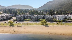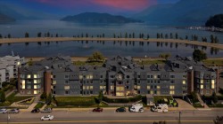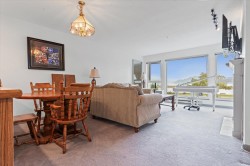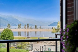 It’s all about the view! This 2 bedroom, 1 bath condo features expansive windows framing stunning lake and mountain scenery. The exterior has been fully updated (including rain screen), giving the building a sleek, modern, refreshed appeal. Newer builds simply can’t match the size, views, and character of this unit. Natural light pours into the open-concept living room, ideal for entertaining, with a cozy gas fireplace for cool evenings. The kitchen boasts GE Café appliances. Upgraded windows include new motorized blinds and a French door to the balcony. The large primary bedroom also has a patio door to the balcony. With its functional design, amazing outlook, and close access to the beach, marina, & restaurants, this is the perfect year-round home or weekend retreat.
