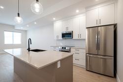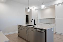 Welcome to modern living in these beautifully finished single family attached homes, offering 4 bedrooms, 2.5 bathrooms, and a choice of two stunning finishing packages. Designed with comfort, quality, and style in mind, these homes are an exceptional blend of functionality and contemporary design. Laminate flooring throughout and elegant tile in the bathrooms and in-floor heating in the master bedroom. The spa-inspired ensuite also includes dual sinks, a tiled shower, and a spacious walk-through closet offering excellent storage. The open-concept kitchen is a true highlight, showcasing quartz countertops, full-height Excel cabinetry with a built-in coffee bar, and a stylish tiled backsplash. A complete stainless steel appliance package is included, with a water line to the fridge. The natural gas BBQ hook-up make everyday living both practical and enjoyable. Price also includes window coverings throughout. The single garage has its your own private driveway for easy parking FEATURES NO STRATA FEES and full ownership of the property your home sits on. THESE PLACES ARE these single family attached homes and offer a rare opportunity to enjoy a low-maintenance, modern lifestyle. All measures approximate.