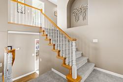 Discover refined living in this beautifully crafted, four-level split home with a bright walk-out daylight basement. Perfectly positioned in sought-after Eagle Heights on a quiet cul-de-sac, this custom residence backs onto a serene forested greenbelt, offering exceptional privacy and a picturesque natural setting. With approximately 3,200 sqft of well-designed living space, this home offers 4 bedrooms and 4 bathrooms. The thoughtfully modelled kitchen opens to a cozy eating area and an inviting family room complete with a gas fireplace and sliding doors to a covered deck—ideal for year-round enjoyment. The impressive living room boasts vaulted ceilings and a gas fireplace, overlooking the elegant formal dining room. A convenient den and laundry room complete the main level. The lower level provides a spacious family/rec room perfect for movie nights or entertaining. Comfort and convenience abound with central air conditioning, built-in vacuum, underground sprinklers, and a relaxing jetted tub. Modern paint tones complement a tasteful blend of hardwood, tile, and carpet flooring throughout. On-demand hot water, Roof 2021. This is an exceptional opportunity to own a beautifully appointed home in a prime location, surrounded by nature yet close to amenities. Don’t miss it!