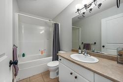 Main floor features an open-concept with HW and tile floors, tons of natural light, large living room with gas FP and + a bonus, versatile flex space perfect for a formal dining, fam rm, gym, den, homework space... Enjoy the updated kitchen with new quartz counters, modern subway tile backsplash, upgraded sink and some newer appliances. Eating area off kitchen (fits a huge table) has patio door access to a partially covered deck — ideal for morning coffee or evening relaxation. The king-sized primary suite includes a W/I closet and ensuite bath, plus 2 additional bdrms and a full bath round out the main floor.