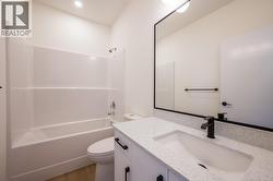 Welcome to this brand new basement entry home offering a bright, modern design with 2 bedrooms on the main floor and a finished daylight basement. The open concept main level is filled with natural light, showcasing a stylish kitchen with stone countertops, abundant cabinetry, and access to a front patio with hillside views. The spacious primary suite features a walk-in closet and a 4-piece ensuite, while a second bedroom and another 4-piece bathroom complete the main floor. The entryway is warm and inviting, with a mudroom that connects to the garage and includes laundry hookups. The lower level offers excellent flexibility with a large family room, third bedroom, and full 4-piece bathroom. A separate side entry and rough-ins for a wet bar provide great potential for a private suite, teen space, or extended family living. There’s also a private patio facing east to enjoy the morning sun, plus plenty of storage for your belongings. This home is finished with modern touches including stone counters, laminate flooring, and neutral Colors. Located in a bare land strata of 20 duplex-style homes, fees are just $150/month and include water, sewer, garbage, and road maintenance. Steps away you’ll find the Rivers Trail along Aviation Way, river access, and a fenced dog park. Shopping, schools, and transit are minutes from your door. Quick possession available. (id:27)