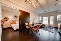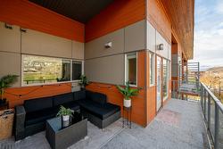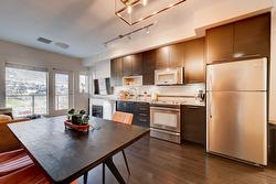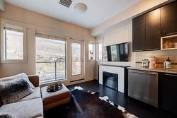 This 2 bedroom plus den apartment on the top floor is in fantasic condition and shows like new. The layout is open and has a great outdoor space . The home has lovely finishings with Corian counters throughout the kitchen and both bathrooms. The main bedroom has access to the 4 pc ensuite, and the 2nd bedroom with modern style barn door access. There is a second bathroom as well as a den to usa as office or extra storage and includes the stackable washer and dryer. Forced air heating and cooling as well as hot water is included in the HOA fees. The building is secure with an underground parking spot and a storage locker included. Pets and rentals are allowed in this Building.